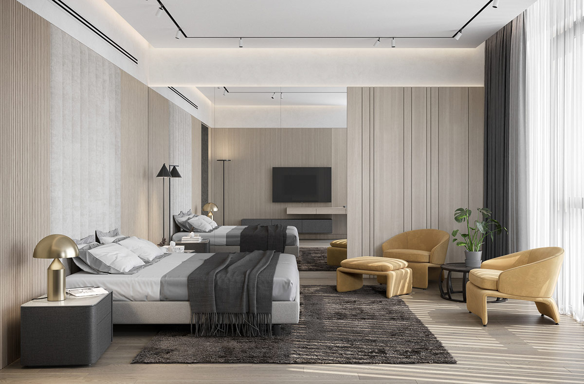 Постоянно меняющиеся цвета украшают комнаты этой частной резиденции площадью 480 квадратных метров в Дубае, Объединенные Арабские Эмираты, визуализированной Ugo Concept. Это теплый и гостеприимный семейный дом с множеством идей для детских комнат, как общих, так и отдельных. Существует также множество стильных гостиных в практичных пропорциях, которые можно применить ко всем типам жилых комнат, больших или маленьких. Специально подобранные коллекции красочных предметов обогащают и оживляют бледно-серые и белые схемы декора, не перегружая и не отвлекая внимание. Посмотрите, как эти цветовые палитры идеально попадают в цель, достигая привлекательного баланса между успокаивающим и творческим.